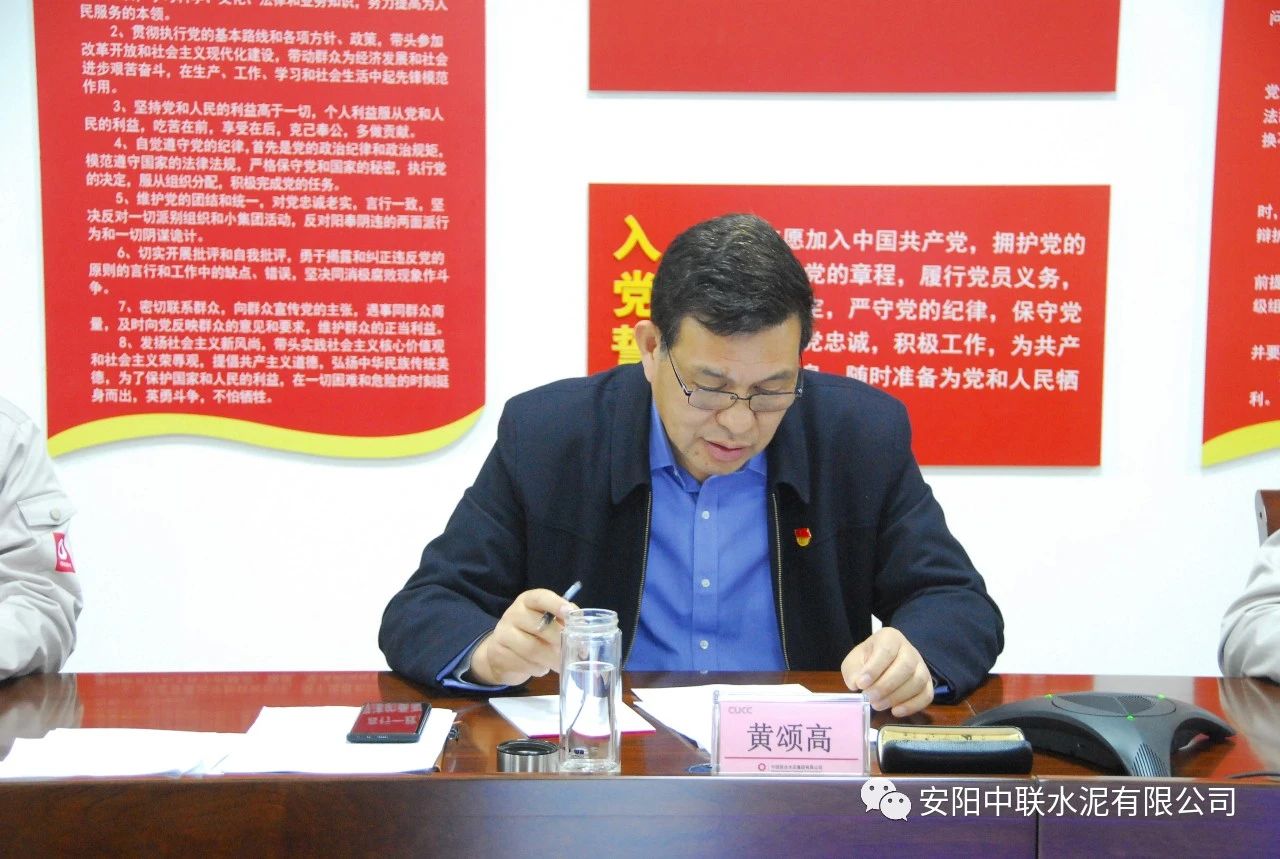 最后,黃頌高代表領(lǐng)導(dǎo)班子作表態(tài)發(fā)言。黃頌高表示,安陽中聯(lián)將在中國聯(lián)合水泥、河南運(yùn)營管理區(qū)的正確領(lǐng)導(dǎo)下,以此次民主生活會為契機(jī),緊緊圍繞中國聯(lián)合水泥下達(dá)的年度目標(biāo)任務(wù)和政治巡視整改工作安排,著力謀劃好公司黨的建設(shè)和“水泥+”一體化經(jīng)營發(fā)展大計(jì),加強(qiáng)科學(xué)謀劃,深化改革創(chuàng)新,搶抓機(jī)遇,堅(jiān)定信心,迎難而上,確保全年各項(xiàng)目標(biāo)任務(wù)如期完成,以優(yōu)異的成績迎接建黨100周年。